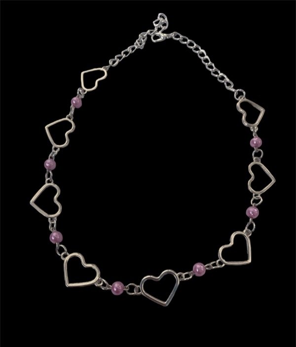 collar corazones más perlas lilas