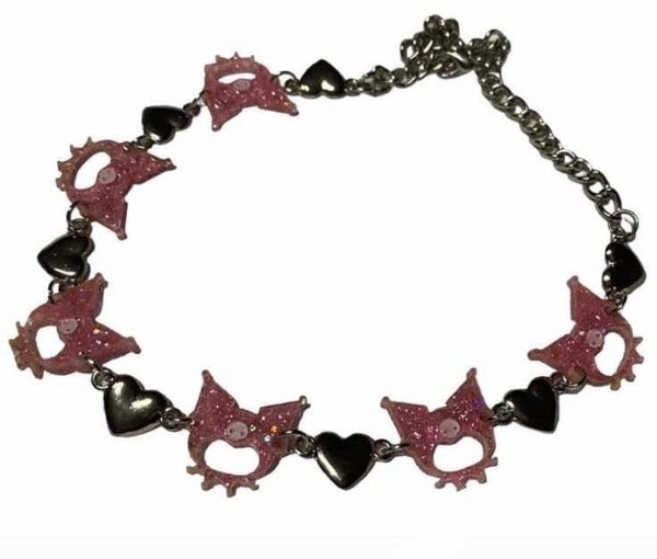 collar kuromi glitter con corazones