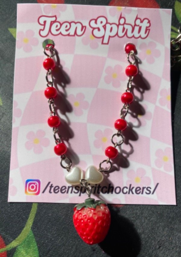 collar perlas con frutilla resina